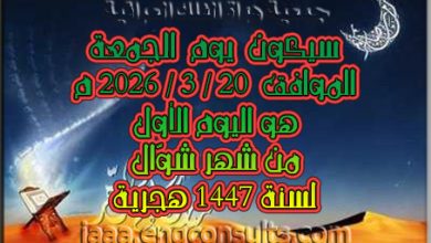 الإعلان عن أول أيام شهر شوّال لسنة 1447هـ – 2026م